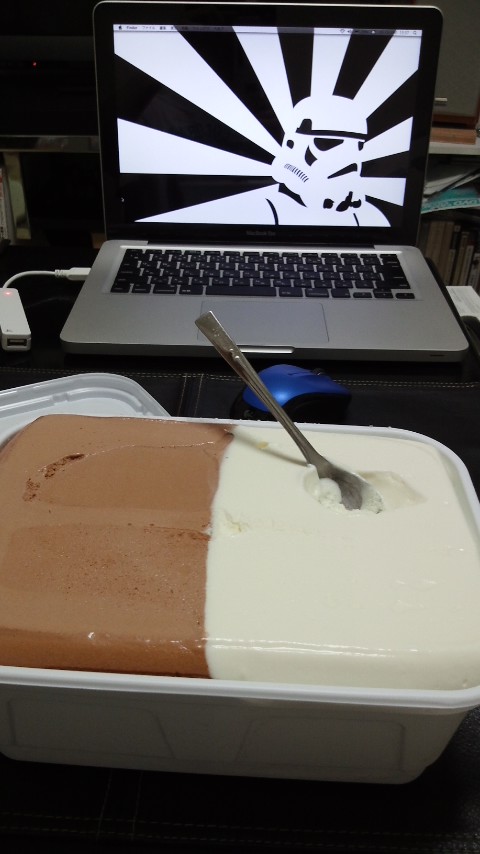 ふと「アイスはファミリーサイズ買った方が安上がりじゃね?」という閃きが全身を駆け巡った為、さっそく2000ml級を¥698で買ってきましたが、3日で食べ尽くしてしまいかえって高く付いてしまいました。