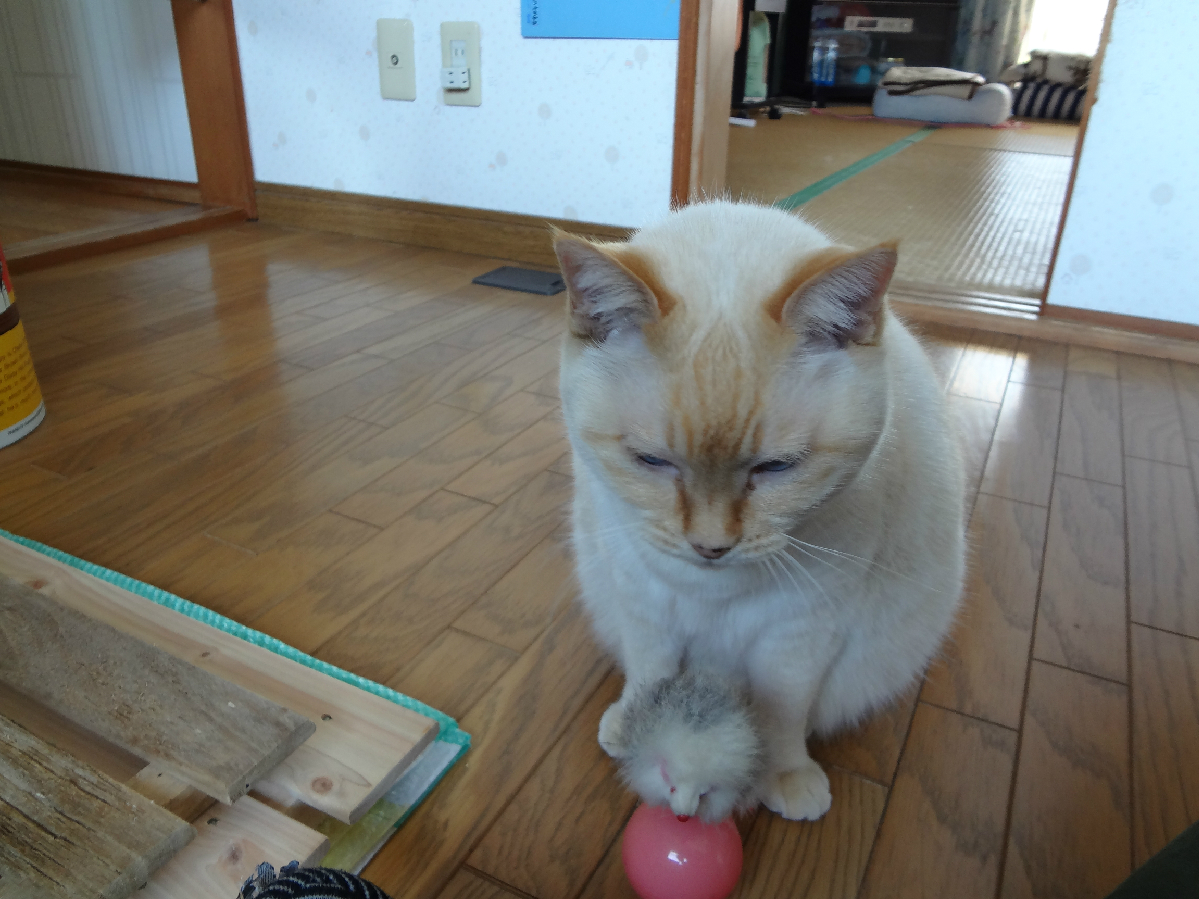 買ってきた玩具では遊ばない、それが猫である。